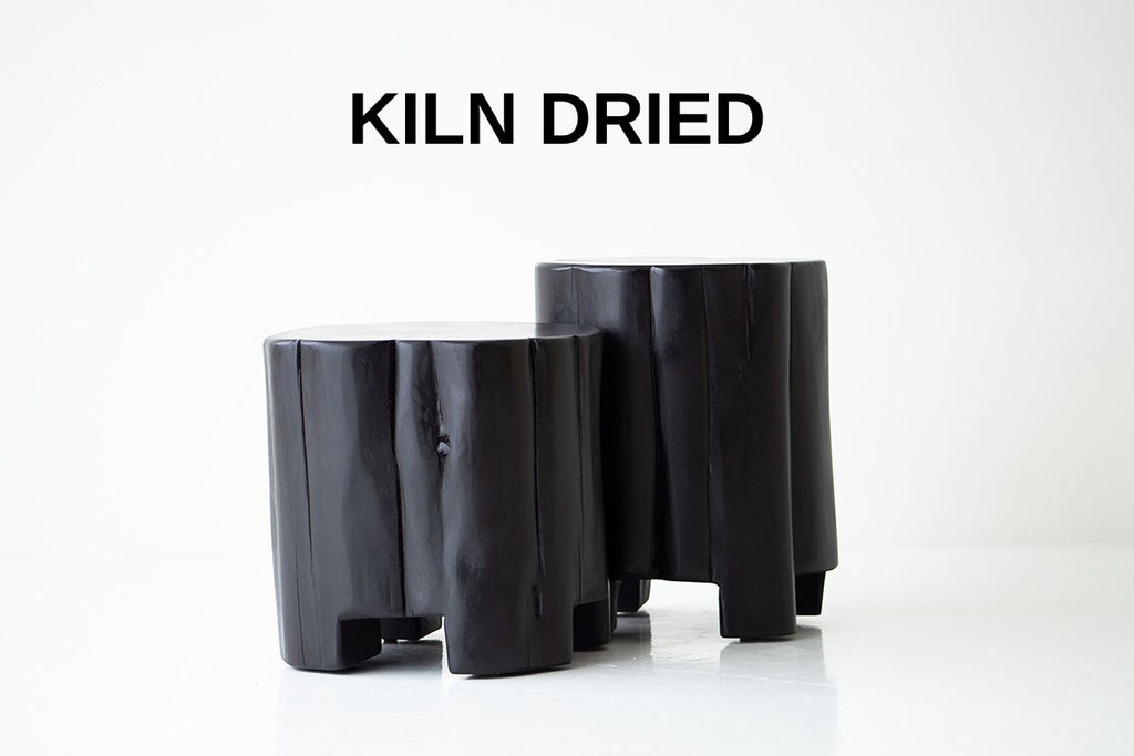 Our stumps all go through a drying process in our kiln, sometimes for up to a month. We are meticulous with bringing each and every log to a specific moisture level. This process helps with major cracking, long-term moisture issues, and bugs.